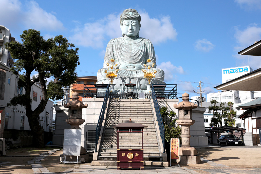 本堂の左手には、日本三大仏の一つ兵庫大仏(身丈十一メートル)がおまつりされている。
