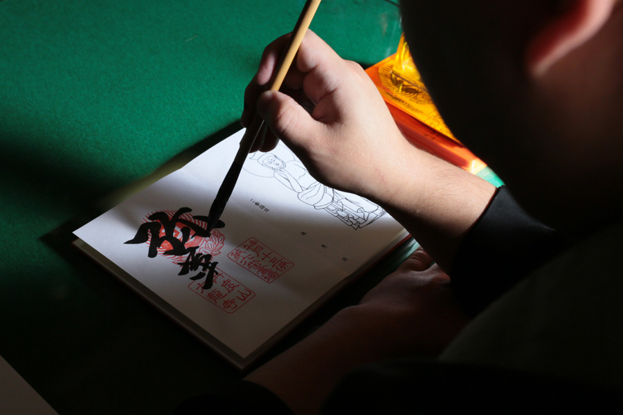 神戸十三仏めぐりでは専用の宝印帳や宝印軸を各札所寺院にてご購入頂けます。札所寺院では、参拝の証に宝印帳(納経帳)に墨書朱印をさせて頂いております。